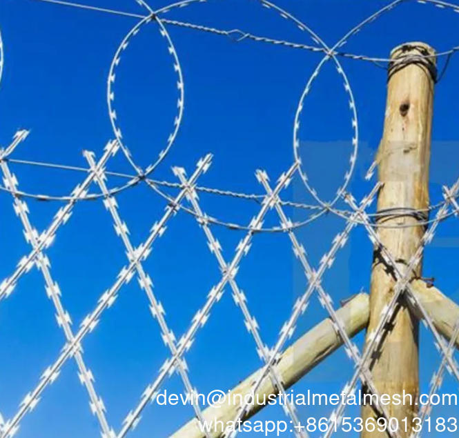 Сварная сетка из колючей проволоки — это многофункциональная, высокозащищенная сетка для ограждений, изготовленная из сваренных вместе прямых лезвий и разработанная в виде ромбовидного или косого квадратного узора, упакованная в рулоны для транспортировки. Сварная сетка из колючей проволоки используется при работах по обустройству территории после установки барьера из лезвий. Ограждение используется для защиты коммерческих, промышленных и государственных учреждений. Продукт практически невозможно преодолеть или разрезать стандартными инструментами. Этот продукт может защитить вас и ваше имущество и обеспечивает безопасность защитных барьеров. Хотя он действует как ловушка, он имеет аккуратный внешний вид.
